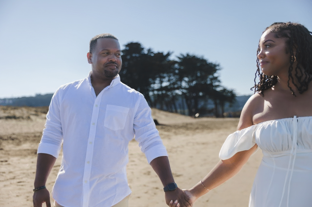 Michael proposed at Alameda Beach and pulled off a complete surprise. The wind, the waves, and the softness of the moment made everything feel surreal. Monica was so shocked that she didn’t even remember if she actually said “yes”… but she definitely did.